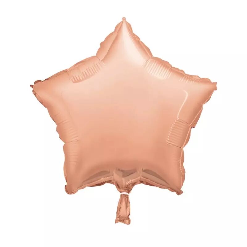 Ballon en aluminium (foil) en forme d’étoile, couleur rose gold, d’une taille d’environ 18 pouces (≈ 45–48 cm), à gonfler à l’air ou à l’hélium.
