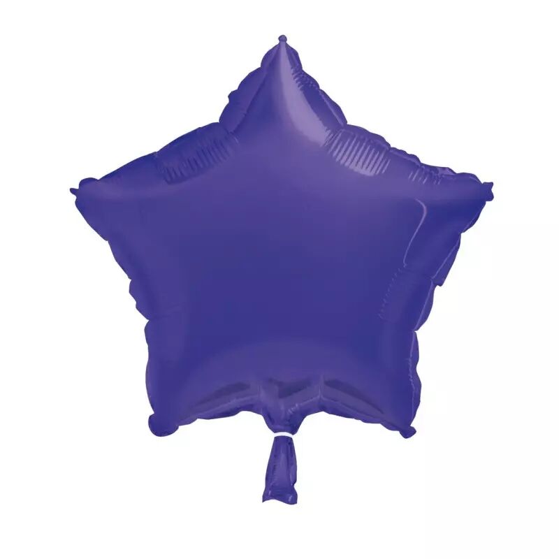 Ballon foil en forme d’étoile, couleur violet profond, diamètre nominal 50 cm, décoratif et adapté à l’hélium ou l’air.