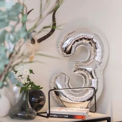 Accueil > ÉVÉNEMENTS > BALLONS > BALLONS CHIFFRES > Ballon Mylar Chiffre "3" Argent 86cm + Paille Incluse
