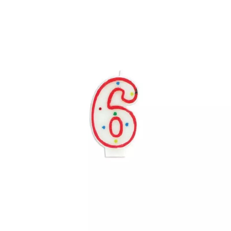 Bougie décorative en forme du chiffre “6”, hauteur adaptée pour gâteau d’anniversaire, montée sur pic pour insertion facile sur gâteau.
