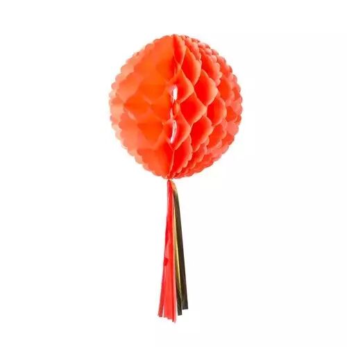 BOULE ALVEOLEE TASSEL CORAIL 30 CM