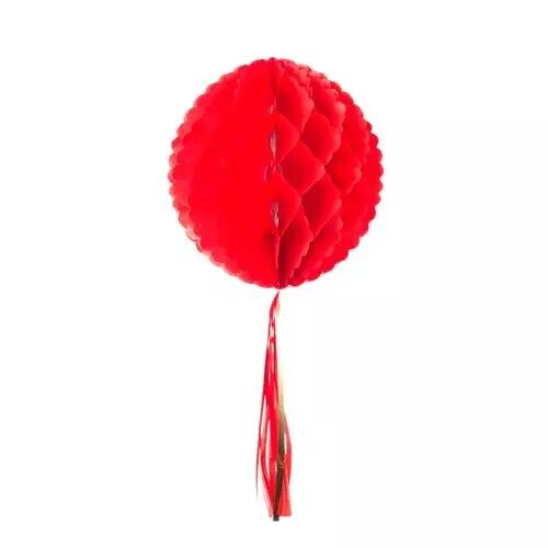 BOULE ALVEOLEE TASSEL ROUGE 30 CM