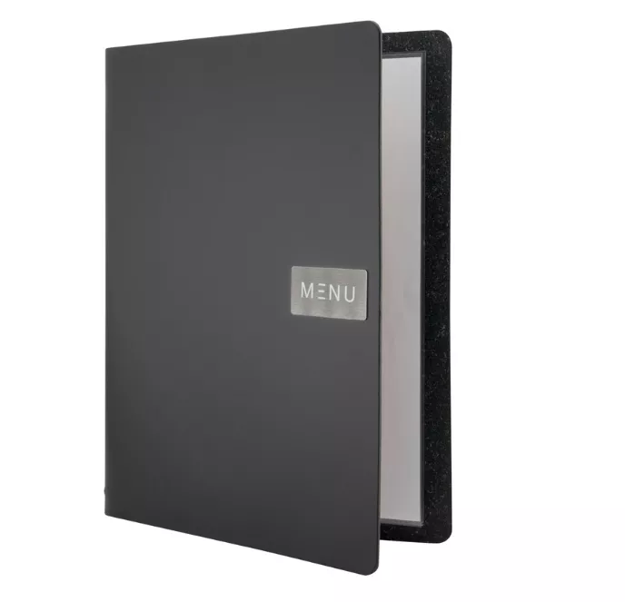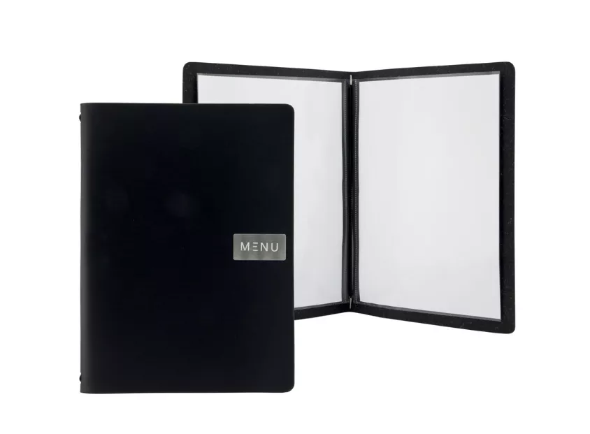 La carte menu A4 en cuir aggloméré noir est un support haut de gamme conçu pour les établissements exigeants souhaitant valoriser leur image et offrir une expérience client raffinée. Idéale pour les restaurants gastronomiques, hôtels, bars, brasseries et cafés, elle associe esthétique, résistance et fonctionnalité pour une présentation irréprochable de vos menus.