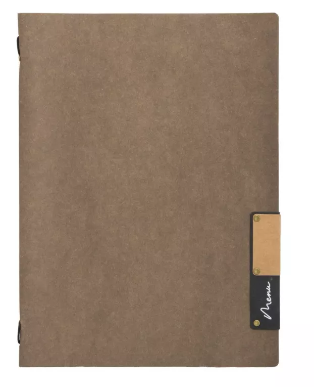 Issue de la collection Nature, cette carte menu se distingue par son aspect sobre et moderne, évoquant les textures naturelles et l’esprit éco-responsable. Son revêtement qualitatif apporte une touche chaleureuse et raffinée à votre table, créant une expérience client immersive et professionnelle.