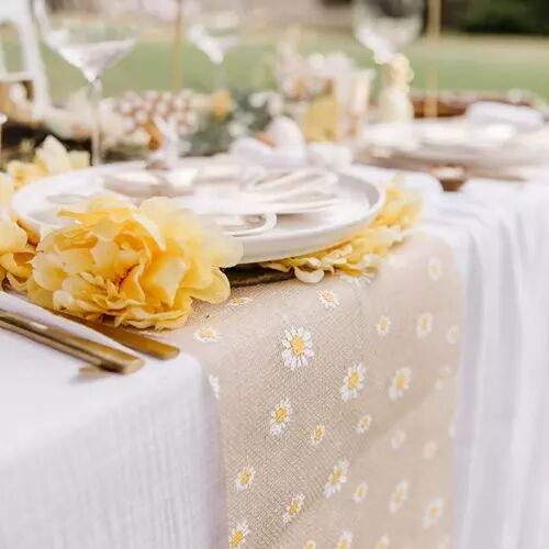 Accueil > ÉVÉNEMENTS > FESTIVITÉS > PÂQUES > Chemin de Table 28X5 Daisy Flowers Jute, Blanc et Jaune