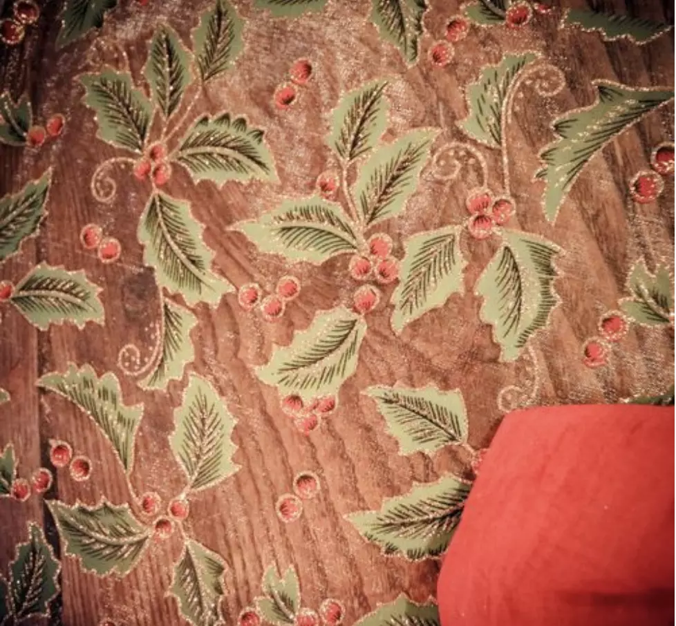 CHEMIN DE TABLE HOUX DE NOEL ORGANZA ET PAILETTES OR 28CMX3M