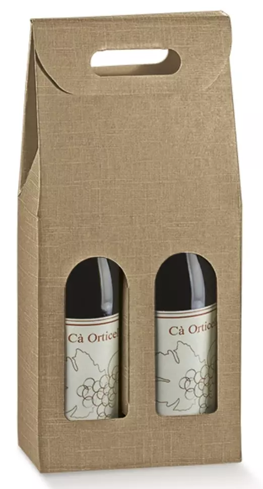 La boîte carton référence 30627 de Scotton est conçue pour transporter et présenter élégamment deux bouteilles. Elle est équipée d'une poignée pratique et de deux fenêtres en façade, offrant une belle mise en valeur des bouteilles à l'intérieur. Fabriquée en carton recyclable, elle associe praticité et esthétisme.