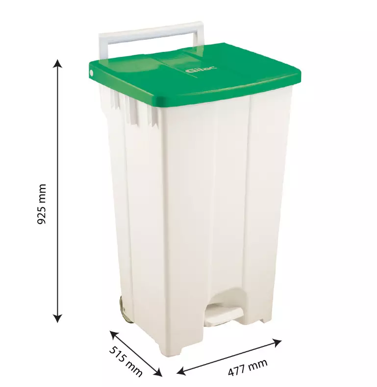 La référence **G614423** est un collecteur à pédale conçu pour la gestion des déchets en environnement professionnel. - Il est fabriqué en polypropylène rigide, léger, durable et sans bisphénol A. - Il permet une ouverture sans contact grâce à sa pédale, réduisant le risque de contamination. - Mobile, il est équipé de deux roues antitraces de 100 mm de diamètre. - Son couvercle vert, au-delà de l’aspect esthétique, favorise un tri sélectif clair et pratique.