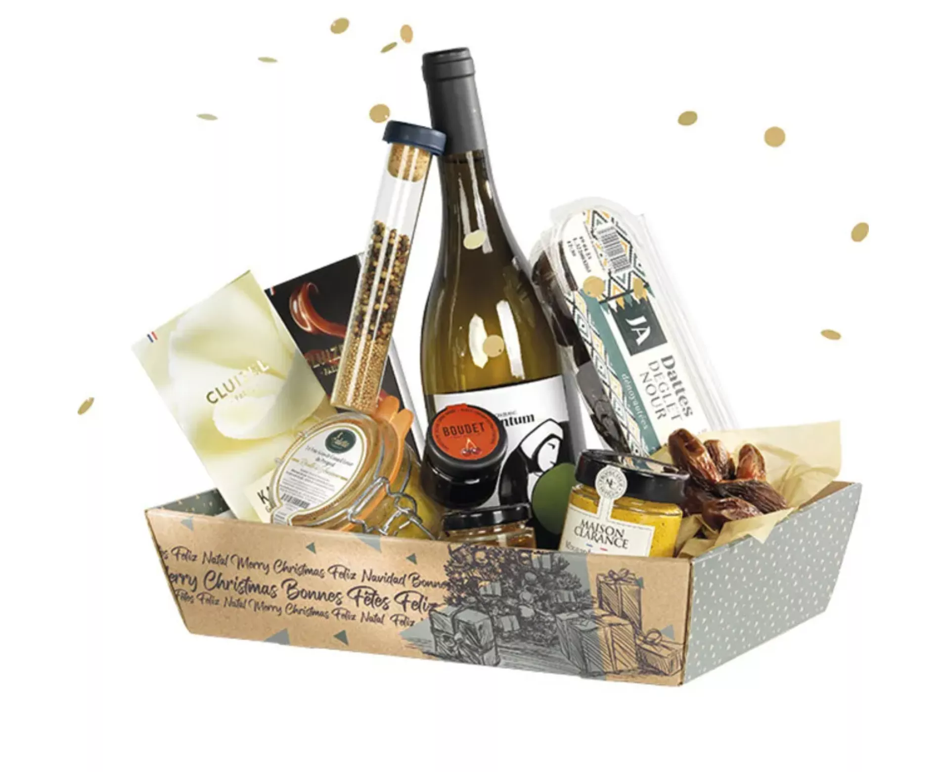 Corbeille carton kraft rectangle BONNES FÊTE vintage/vert 34x21x7.3cm