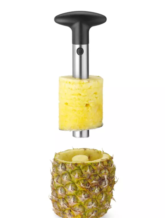 Grâce à son mécanisme simple et efficace, cet outil permet de découper un ananas en quelques secondes. Il élimine le cœur du fruit tout en réalisant des tranches régulières, prêtes à être utilisées pour la préparation de desserts, cocktails, buffets ou plats exotiques. Ce gain de temps améliore la productivité et réduit les pertes de matière première.
