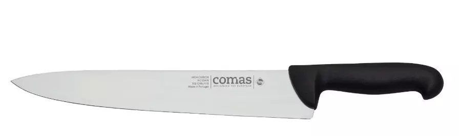 Couteau professionnel de cuisine, lame en inox, manche noir, longueur totale de 42,60 cm. Modèle “Carbon”, idéal pour usage intensif en restauration.