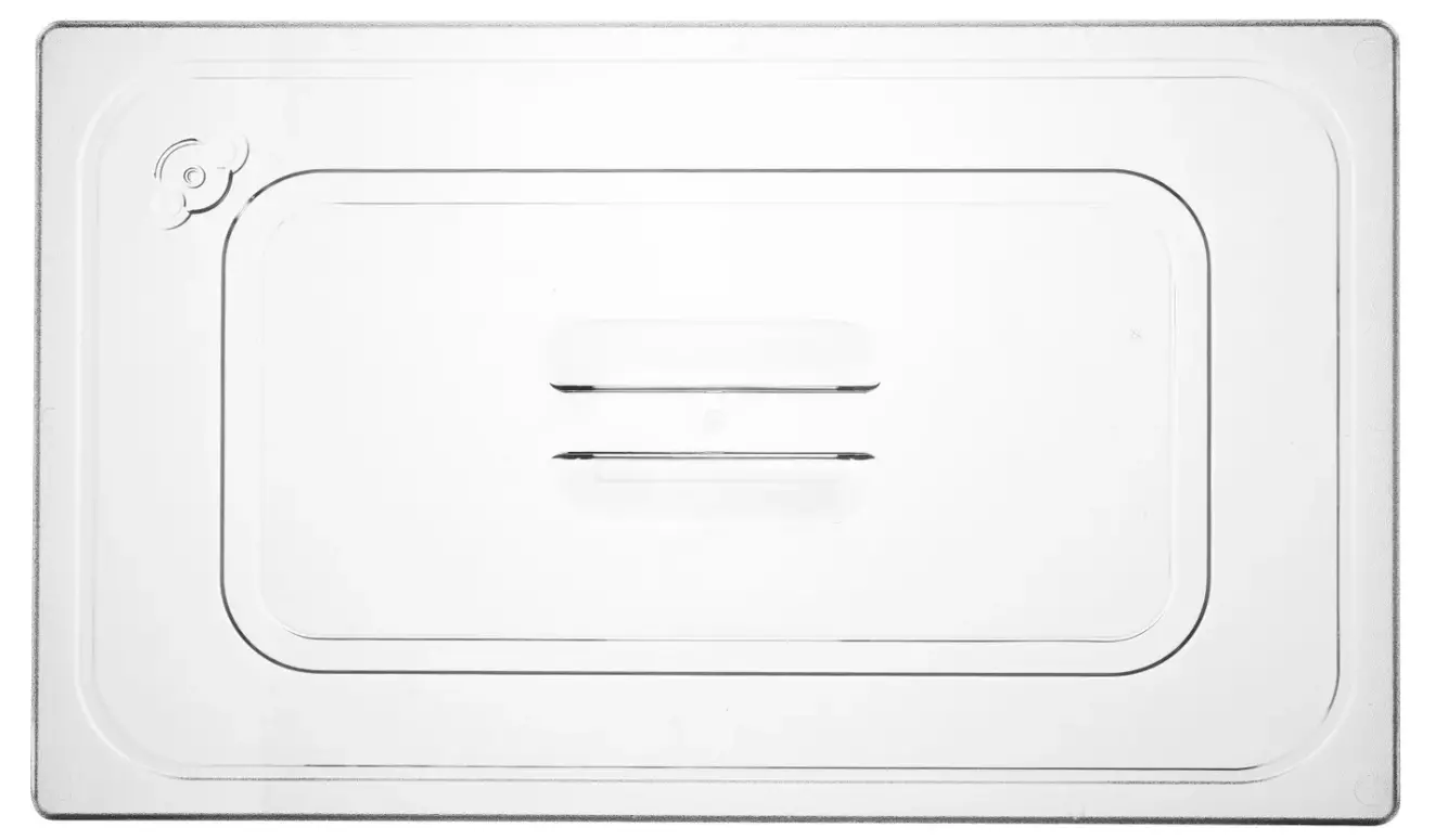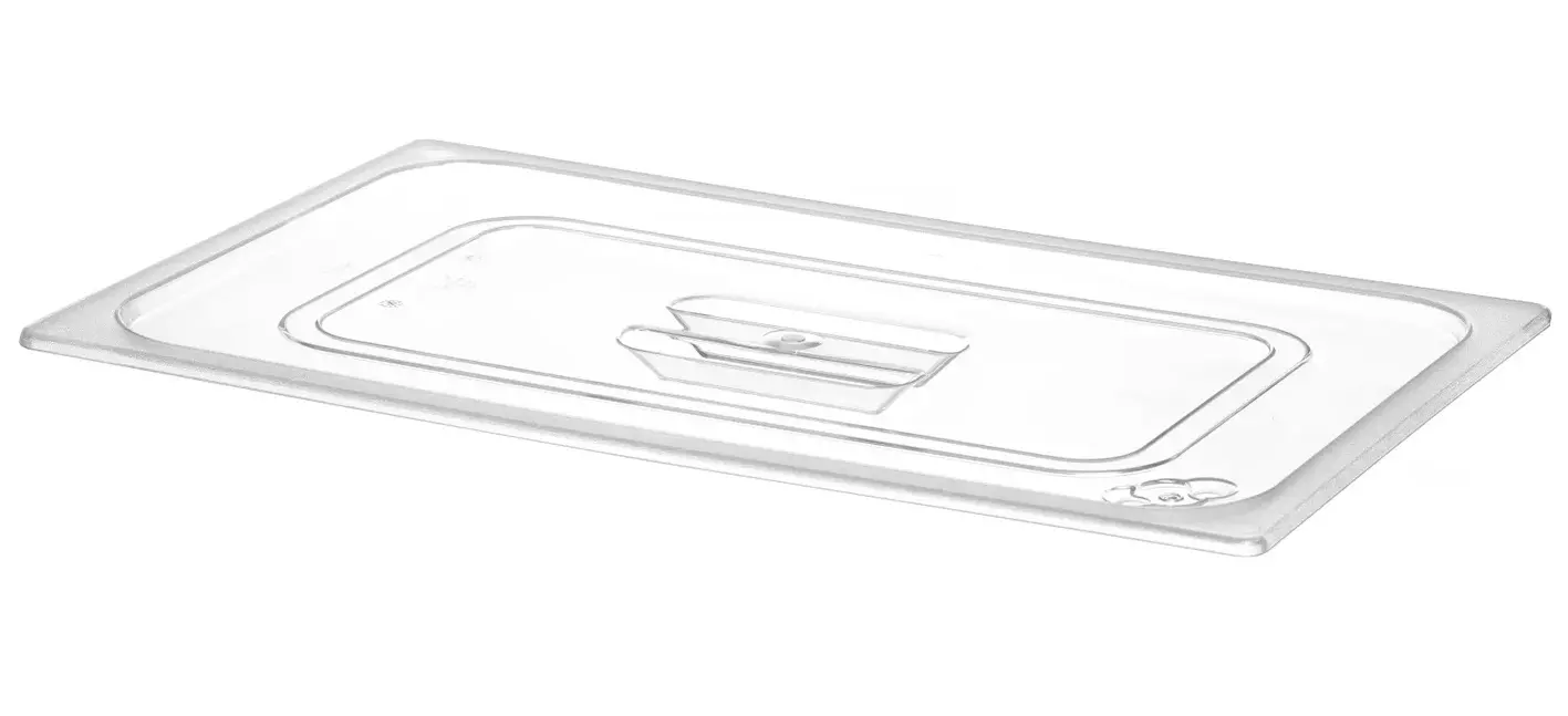 Couvercle en polycarbonate transparent, format GN 1/3 (325 × 176 mm), épais et rigide, doté d’une large poignée. Conçu pour conserver et présenter les aliments, il est compatible lave-vaisselle et résistant de –40 °C à +110 °C.