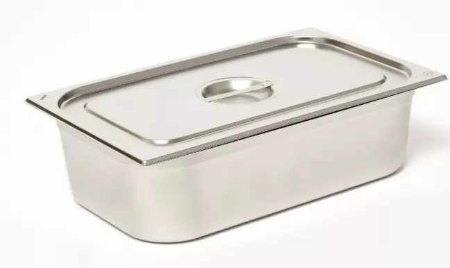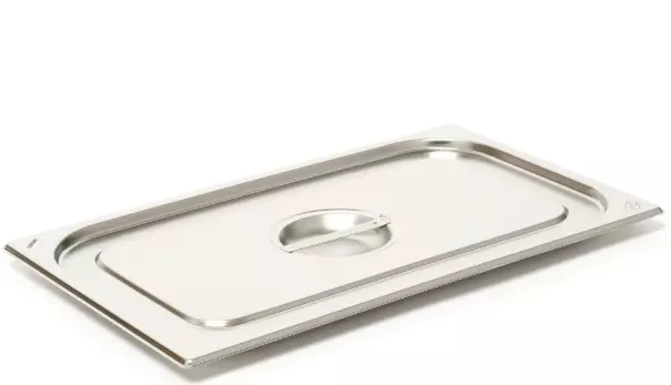 Couvercle en inox pour bac gastronorme GN 1/1, conçu pour une fermeture hermétique et une conservation optimale des aliments.