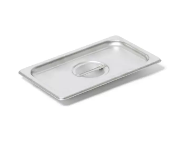Couvercle en acier inoxydable 18/0, dimensions ≈ 26,4 × 16,2 cm, épaisseur 0,7 mm. Conçu pour bacs GN 1/4, totalement étanche, empilable et compatible lave-vaisselle.