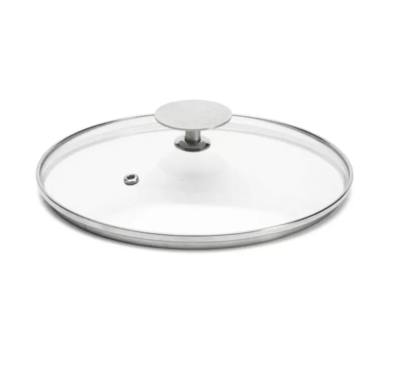 Description courte : Petit couvercle en verre trempé Ø16 cm avec poignée en inox, parfait pour surveiller vos cuissons sans déperdition de chaleur.
