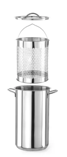 Le modèle **833100** de HENDI, baptisé “Cuiseur à asperges et pâtes XL”, est un ustensile robuste conçu pour les cuisines professionnelles. Sa hauteur généreuse permet de cuire à la vapeur des asperges très longues sans les casser, tout en offrant une excellente polyvalence : légumes, poissons, pâtes, voire garder des hot-dogs à température idéale. Le set inclus comprend une marmite, un panier vapeur perforé et un couvercle. Compatible avec toutes les sources de chaleur, y compris induction.