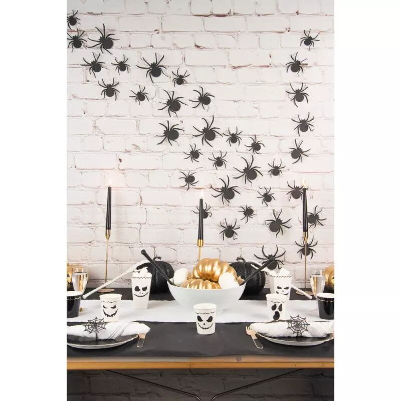 SET DE 35 ARAIGNEES NOIRES DE 3 DIFFÉRENTES TAILLES AVEC EFFET 3D A COLLER SUR VOS MURS A L AIDE D'UNE GOMME ADHESIVE REPOSITIONNABLE FOURNIE POUR CRÉER UNE SCÈNE D HALLOWEEN TERRIFIANTE