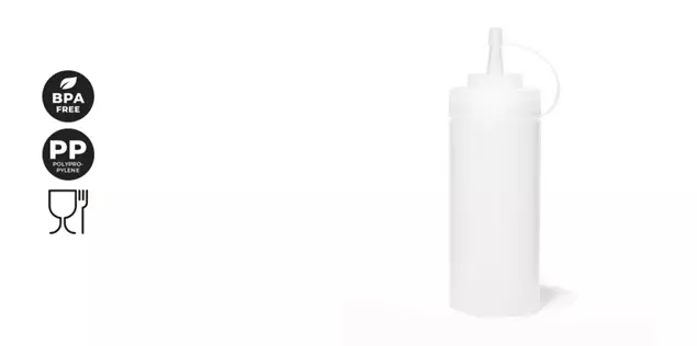 Distributeur manuel à pression de 360 ml, fabriqué en polypropylène transparent sans BPA, conçu pour une distribution hygiénique et précise de sauces, condiments ou huiles.