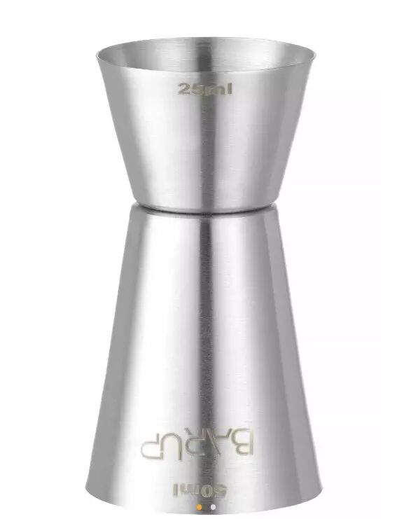 Le **doseur 25/50 ml (Réf. 596722)** de la gamme BarUp est un ustensile essentiel pour barman, garantissant des dosages fiables afin d’éviter de trop verser. Conçu en acier inoxydable au fini mat, il offre une durabilité remarquable et deux capacités pratiques dans un seul outil.
