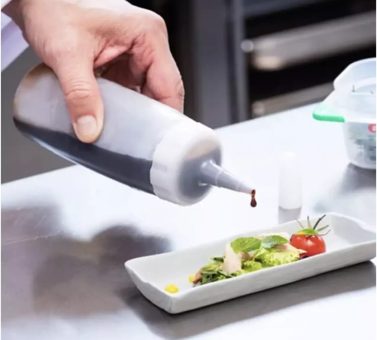 Ce doseur de sauce 35, au design ergonomique et coloré, est l’outil professionnel indispensable pour assaisonner, décorer ou doser avec précision. Idéal pour toutes sortes de sauces, huiles, sirops ou réductions, il assure une application nette, contrôlée et hygiénique.