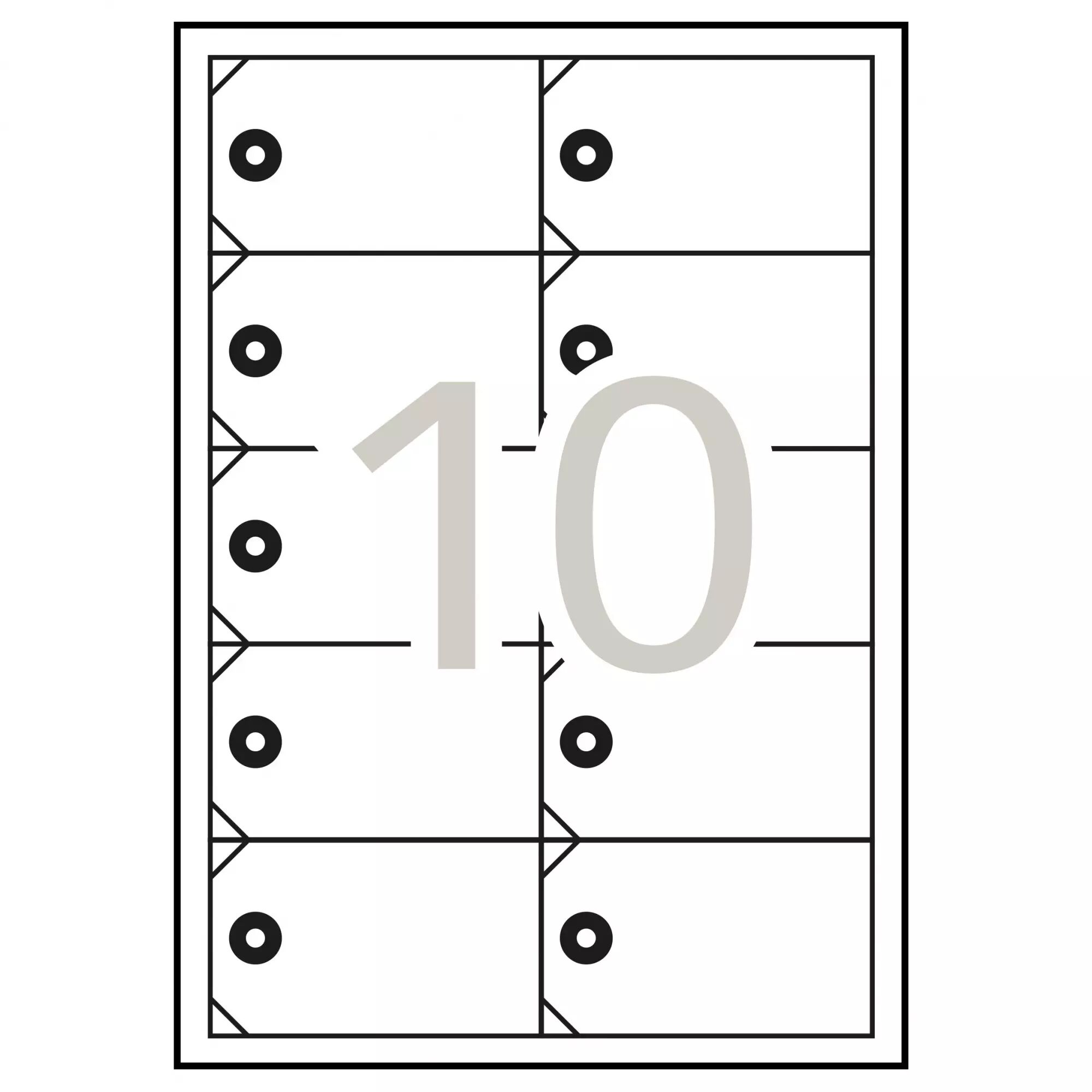 Pack de 10 feuilles (soit 100 étiquettes) à fil, imprimables, en carton 200 g/m², sans adhésif, avec œillet renforcé.