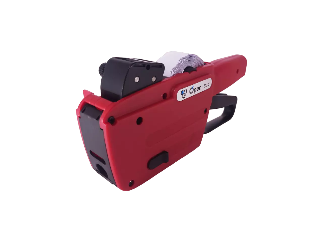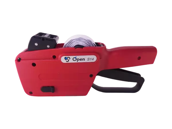 Pince à étiqueter OPEN S14, avec deux lignes de 8 caractères en haut de l’étiquettes et 6 caractères en bas de l’étiquette, utilisant des étiquettes 26*16. Utilisation : Référence, prix, numéro de lot, double date etc…