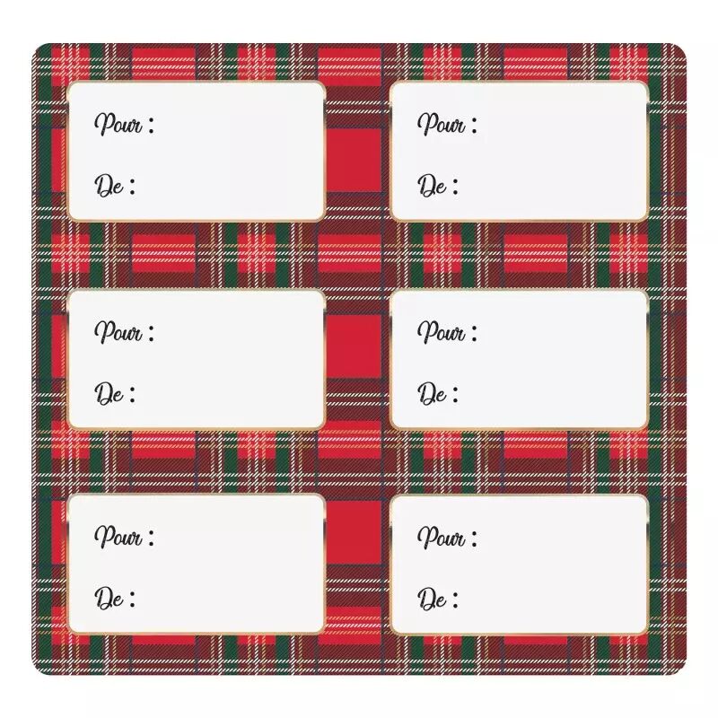 ETIQUETTES CADEAUX ADHESIVES TARTAN X12
