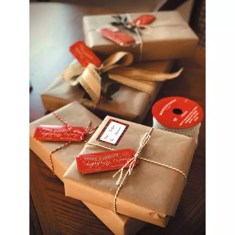 ETIQUETTES CADEAUX ADHESIVES TARTAN X 12