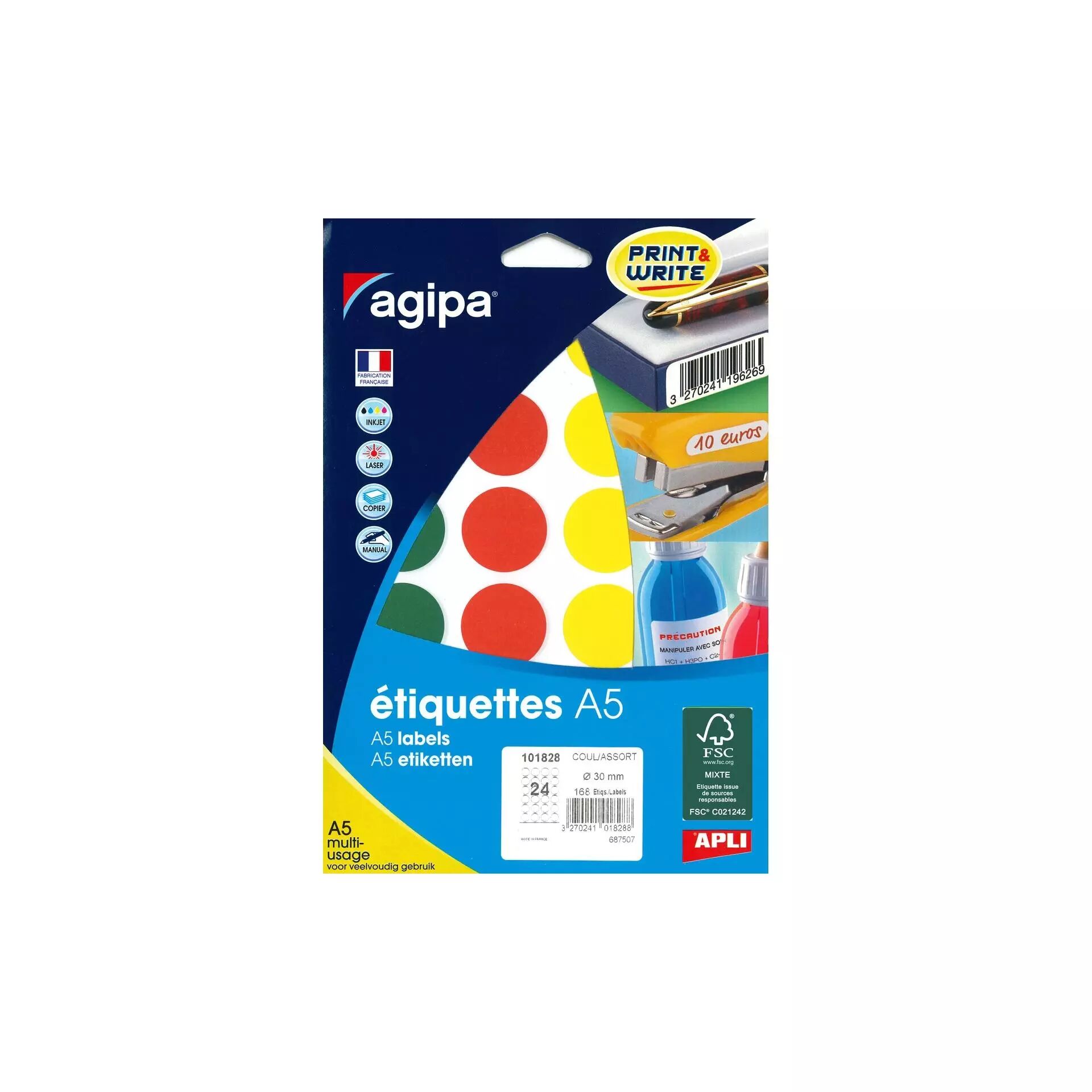 Pochette de 168 pastilles autocollantes rondes Ø 30 mm, en papier certifié PEFC, couleurs assorties, compatibles impression et écriture manuelle.