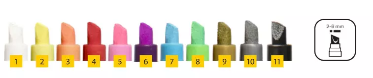 Agitez le marqueur vigoureusement avant emploi. Pressez doucement la pointe sur une surface test jusqu’à ce que l’encre afflue, puis écrivez. Laissez sécher 1 à 2 minutes. Pour effacer, utilisez un chiffon humide ou le nettoyant dédié. Pensez à bien refermer le capuchon pour conserver la pointe.