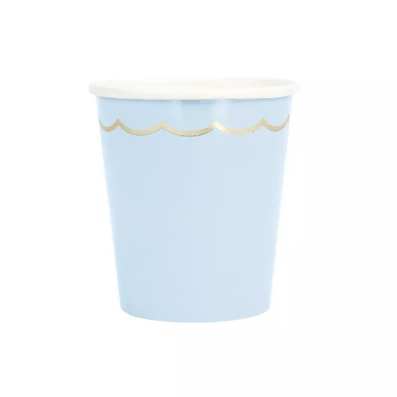 Apportez une touche élégante et raffinée à vos réceptions avec ce lot de 8 gobelets festonnés aux tons doux bleu pastel et doré. Ornate et délicat, ce design s’accorde parfaitement avec les thèmes “sirène”, “under the sea” ou “baby shower”. Fabriqués en papier de 300 g FSC, ces gobelets combinent esthétique, solidité et respect environnemental.