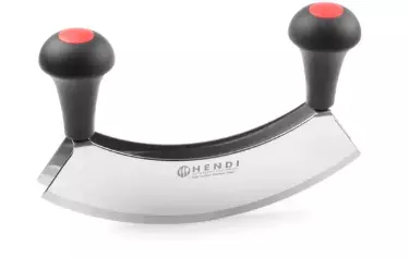 Le **hachoir demi-lune 844359** est un ustensile robuste idéal pour la découpe d’herbes, légumes et aromates en cuisine professionnelle. Sa lame en acier inoxydable associée à un manche en polypropylène garantit durabilité, stabilité et facilité de prise en main. Compact et efficace, il est prêt à l'emploi sans assemblage nécessaire.