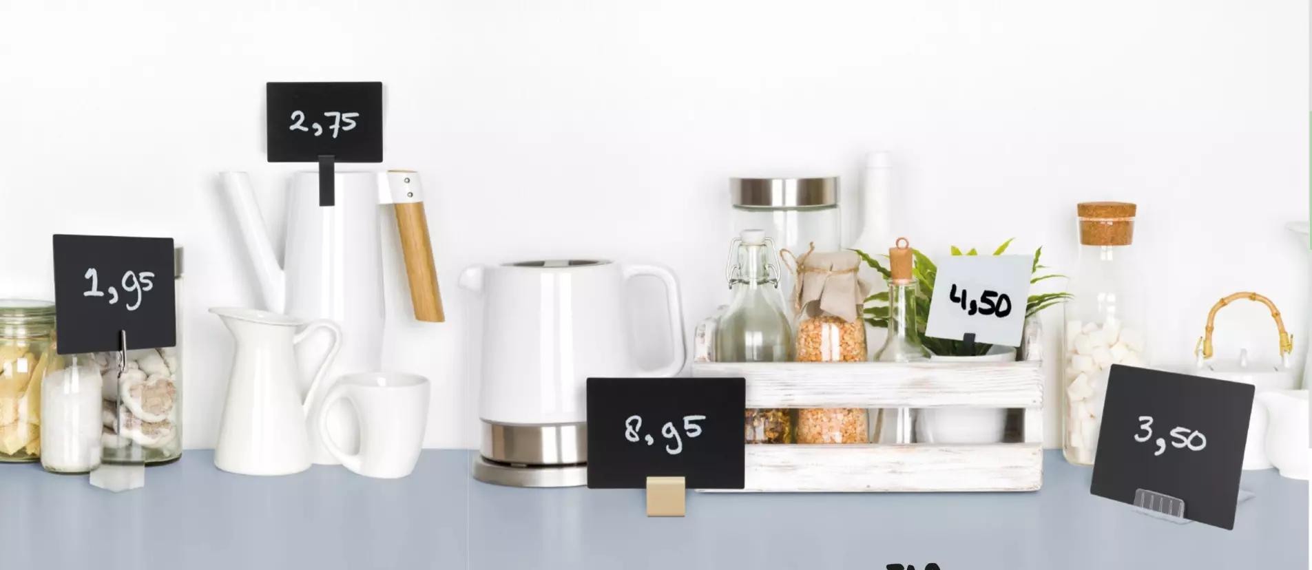Le TAG‑A8‑WT est un set complet de mini chalk tags en polypropylène noir format A8. Il inclut 20 étiquettes, un marqueur craie liquide blanc, 4 pics pour buffet et 2 supports en acrylique pour table ou comptoir. Facile à écrire, effacer et réutiliser, ce kit est conçu pour un usage professionnel (restauration, buffets, stands)