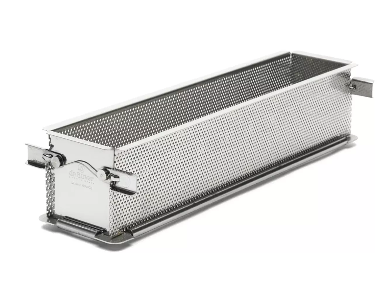 Le Moule à pâté en croûte dépliable inox perforé GEOFORME 35 × 7 × 7,5 cm est un outil de cuisson professionnel conçu pour réaliser facilement des pâtés en croûte parfaitement formés et dorés. Sa conception robuste en acier inoxydable assure une excellente durabilité tout en résistant aux déformations même après de nombreuses utilisations au four.