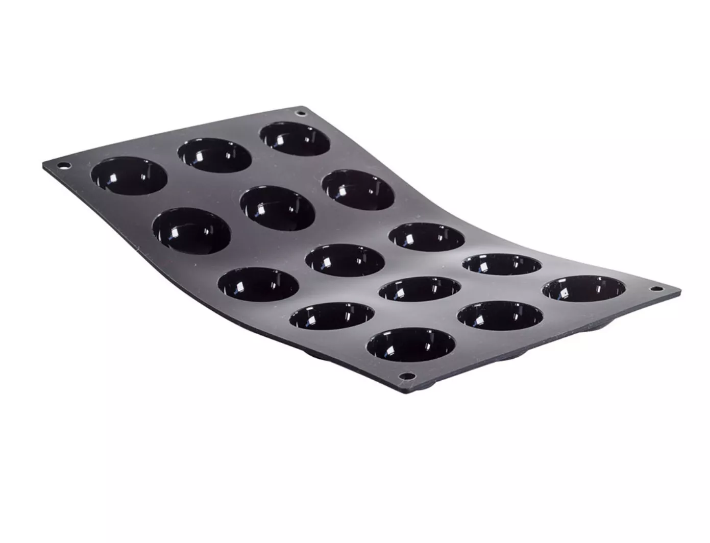 Le moule en silicone MOUL’FLEX pour 15 mini demi-sphères est un ustensile de pâtisserie professionnel conçu pour réaliser facilement des créations sucrées ou salées à la forme moderne : mousses, glaces, entremets, insertions, décorations en chocolat ou caramel. Fabriqué en silicone de haute qualité, il est à la fois souple, résistant et facile à démouler, ce qui en fait un outil polyvalent pour la cuisson, la congélation ou le formage à froid.