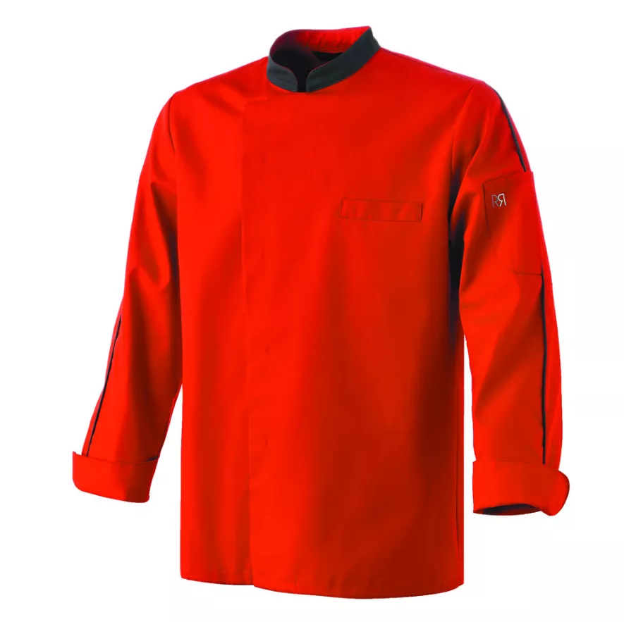 La veste professionnelle ORAGE à manches longues se distingue par son design moderne et contrasté, pensé pour les métiers de la restauration et des métiers de bouche exigeant à la fois élégance et fonctionnalité. Son col officier contrasté et ses liserés décoratifs apportent une touche contemporaine tout en conservant une coupe professionnelle.