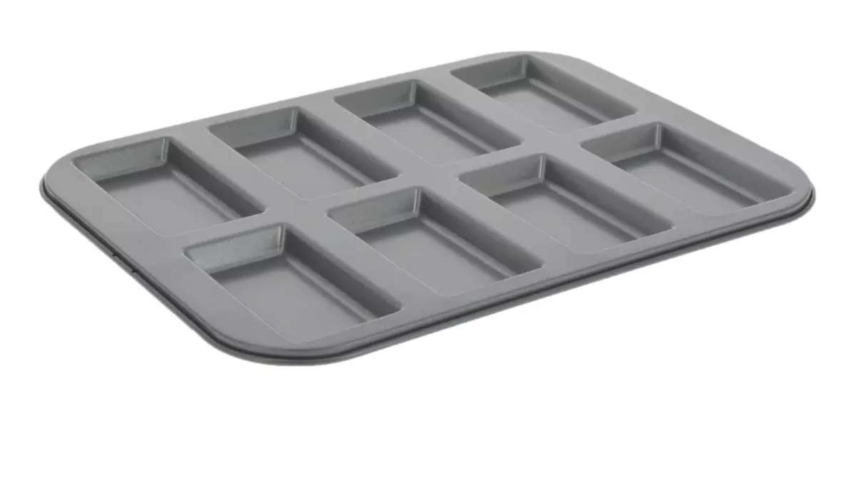 Plaque de pâtisserie professionnelle en acier revêtu, idéale pour cuire jusqu’à 8 grands financiers ou autres petits gâteaux individuels avec une cuisson homogène et un démoulage facile.