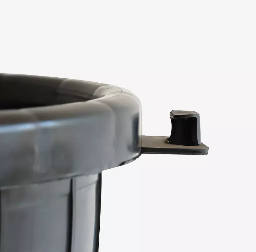 La référence **G613641** correspond à une poubelle ronde de rue, **éco-durable**, avec un couvercle anti-déversement en **polyéthylène recyclé** (R-PEHD). Le couvercle se fixe grâce à **4 crochets**, garantissant une fermeture sécurisée. Elle dispose de **2 poignées** pour faciliter la prise et le déplacement. Fabriquée en France, elle se distingue par sa robustesse et sa praticité, notamment grâce à son design emboîtable (sans le couvercle), idéal pour le stockage ou le transport.