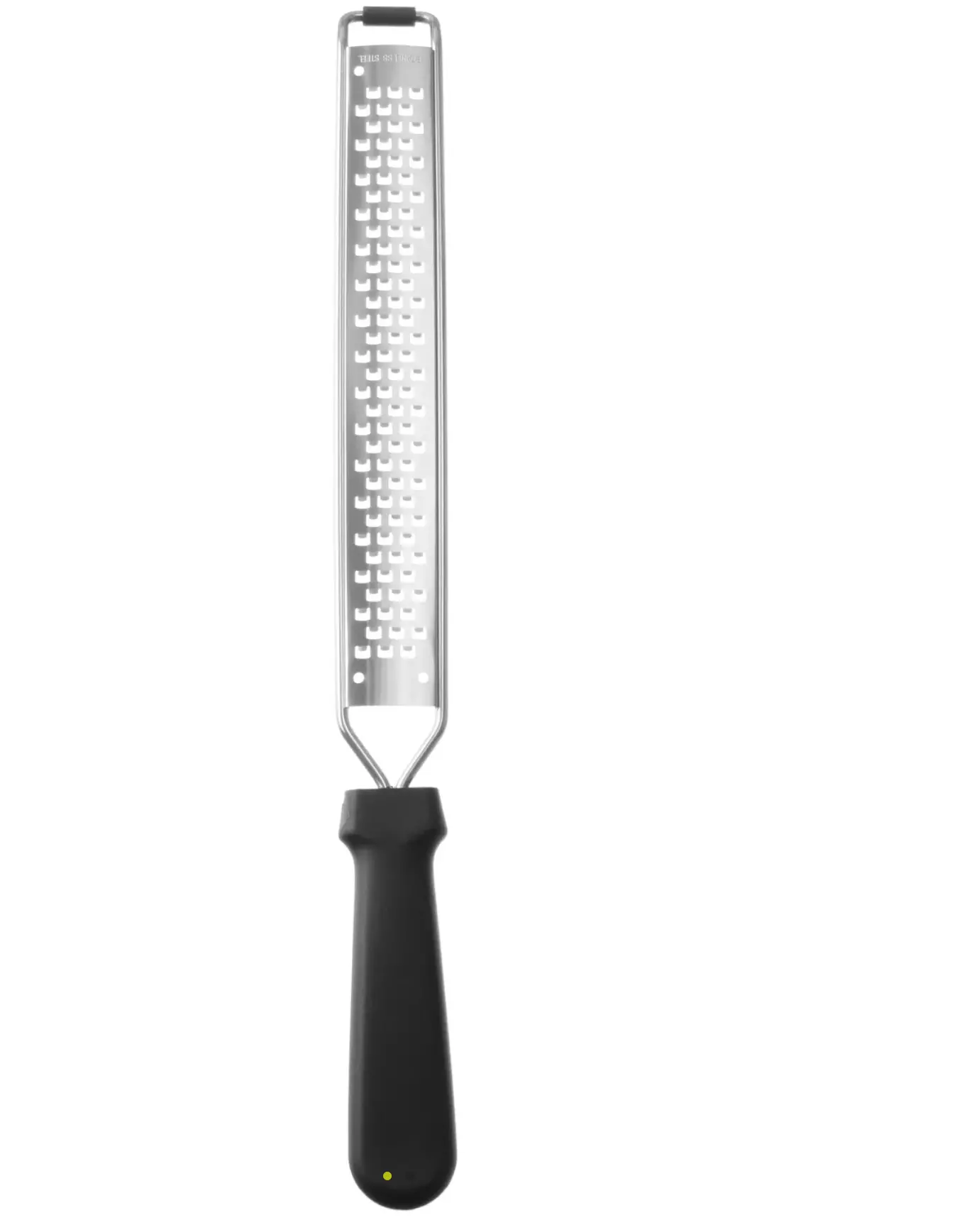Râpe professionnelle à usage fin, lame en acier inoxydable laser, lame de 22 cm, longueur totale 405 mm ; manche ergonomique en polypropylène noir. L’ensemble est lavable en lave-vaisselle.