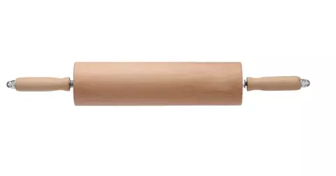 Rouleau à pâte professionnel en bois de hêtre massif, munis de roulements à billes pour une rotation fluide, d’un axe métallique renforcé, et de poignées ergonomiques. Diamètre 75 mm, longueur 640 mm, poids de 1,64 kg. Idéal pour travailler de grandes quantités de pâte d’un seul geste.