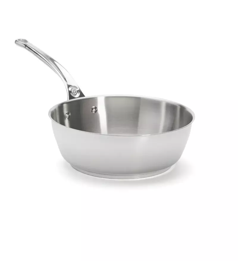 Description courte : Sauteuse bombée en inox Ø 24 cm avec queue en fonte d'inox, idéale pour la cuisine de réduction et les préparations nécessitant une évaporation rapide.
