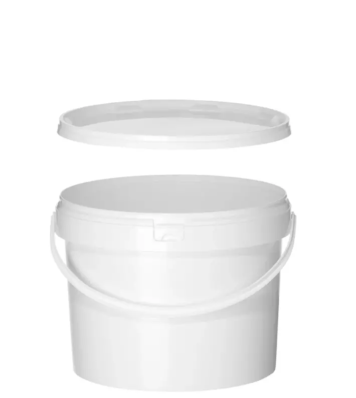 Seau polyvalent en polypropylène blanc avec couvercle inclus, d’une capacité de 11,5 L, dimensions Ø 300 × H 230 mm, poids net ~0,42 kg.