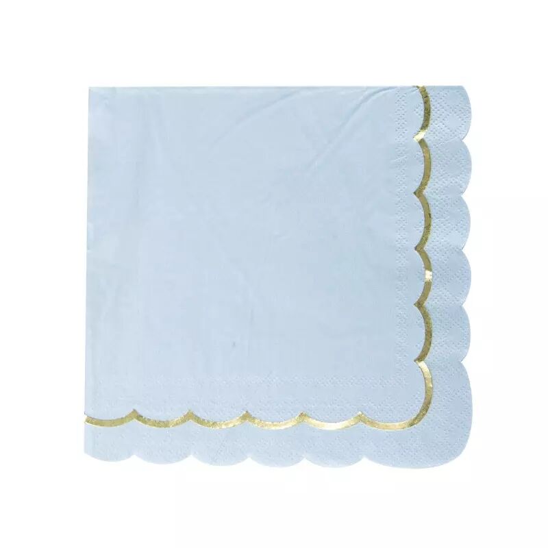 Sublimez vos tables de fête avec ce lot de 16 serviettes festonnées aux tons doux bleu pastel, sublimées d’un galon doré élégant. Conçues en papier FSC, elles offrent un équilibre parfait entre esthétique, durabilité et écoresponsabilité.