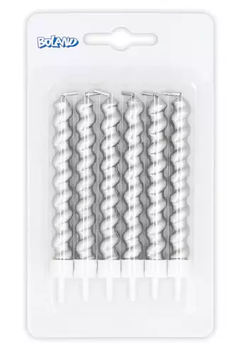 Le set **30354** propose six bougies « swirl » (torsadées) de couleur argentée, parfaites pour décorer tables de fête, gâteaux ou décorations d’intérieur. Ces bougies sont fabriquées en paraffine et présentent un effet spiral élégant qui ajoute une touche raffinée à l’ambiance. Chacune mesure environ 21 cm de hauteur avec un diamètre de 2,2 cm. Temps de combustion estimé à 5 heures.