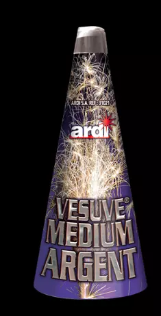 VÉSUVE® MEDIUM est un dispositif pyrotechnique extérieur de spectacle produisant un jet d’étincelles argentées. Il offre une montée progressive en intensité, idéal pour marquer un moment fort lors d’un événement : mariage, soirée, fête en plein air.